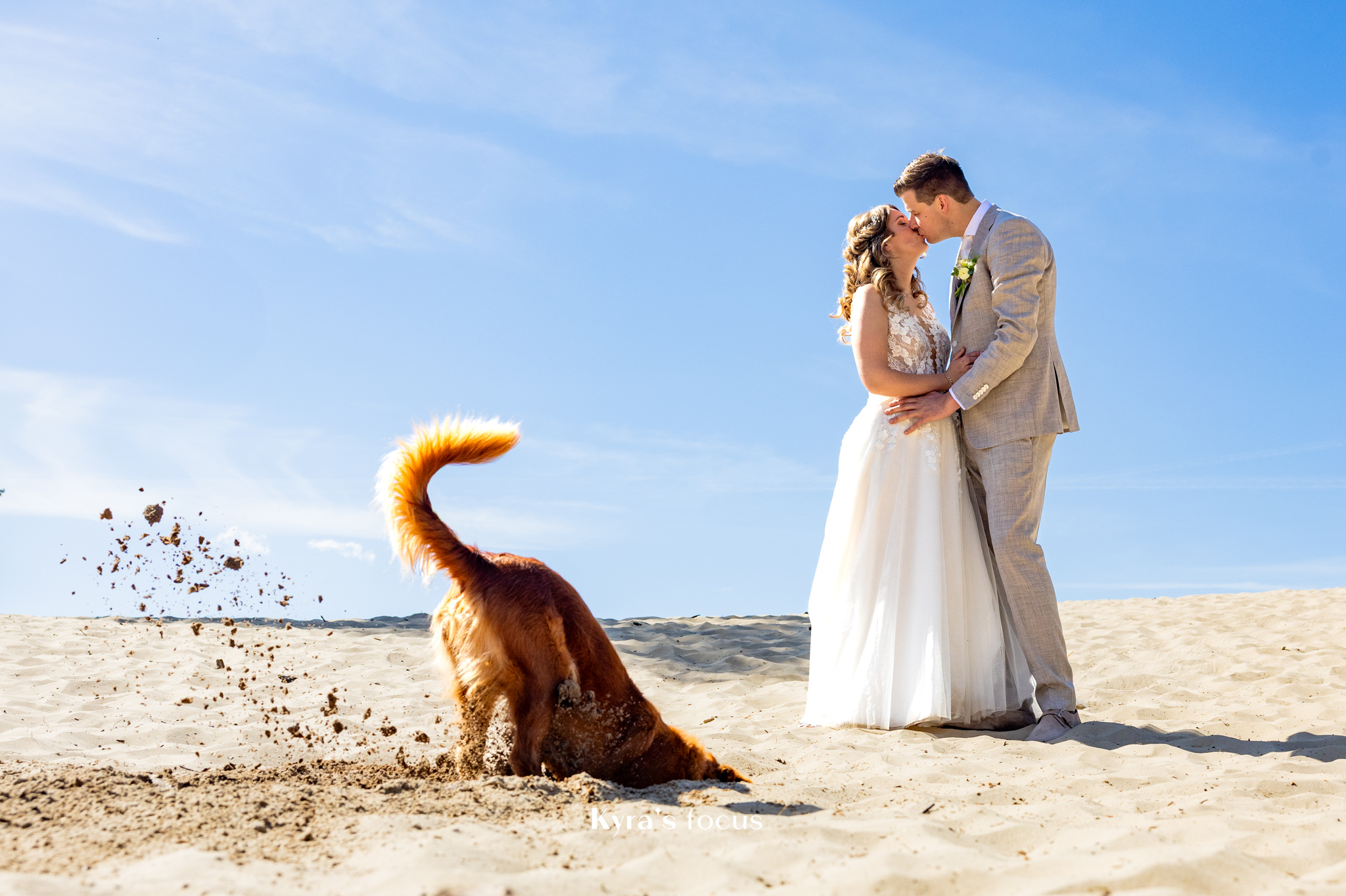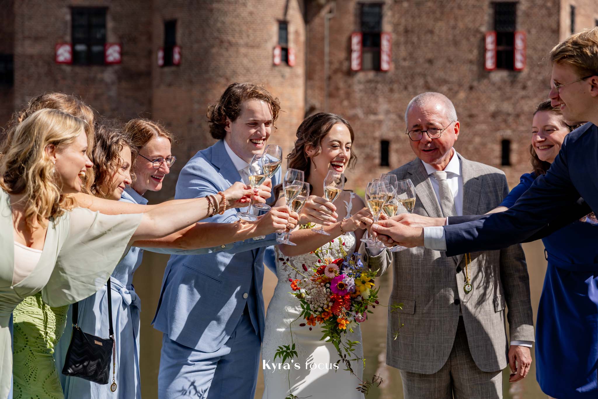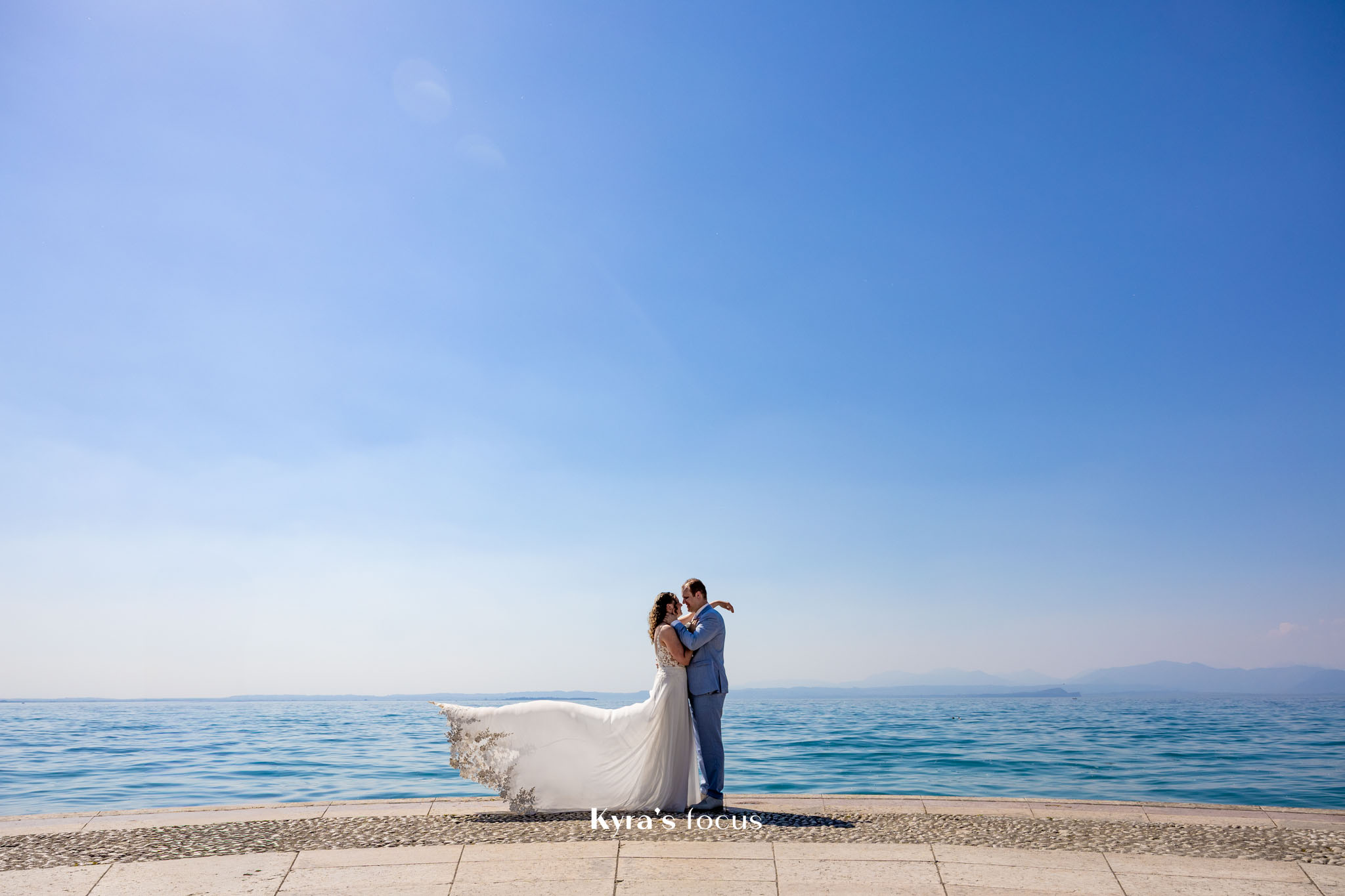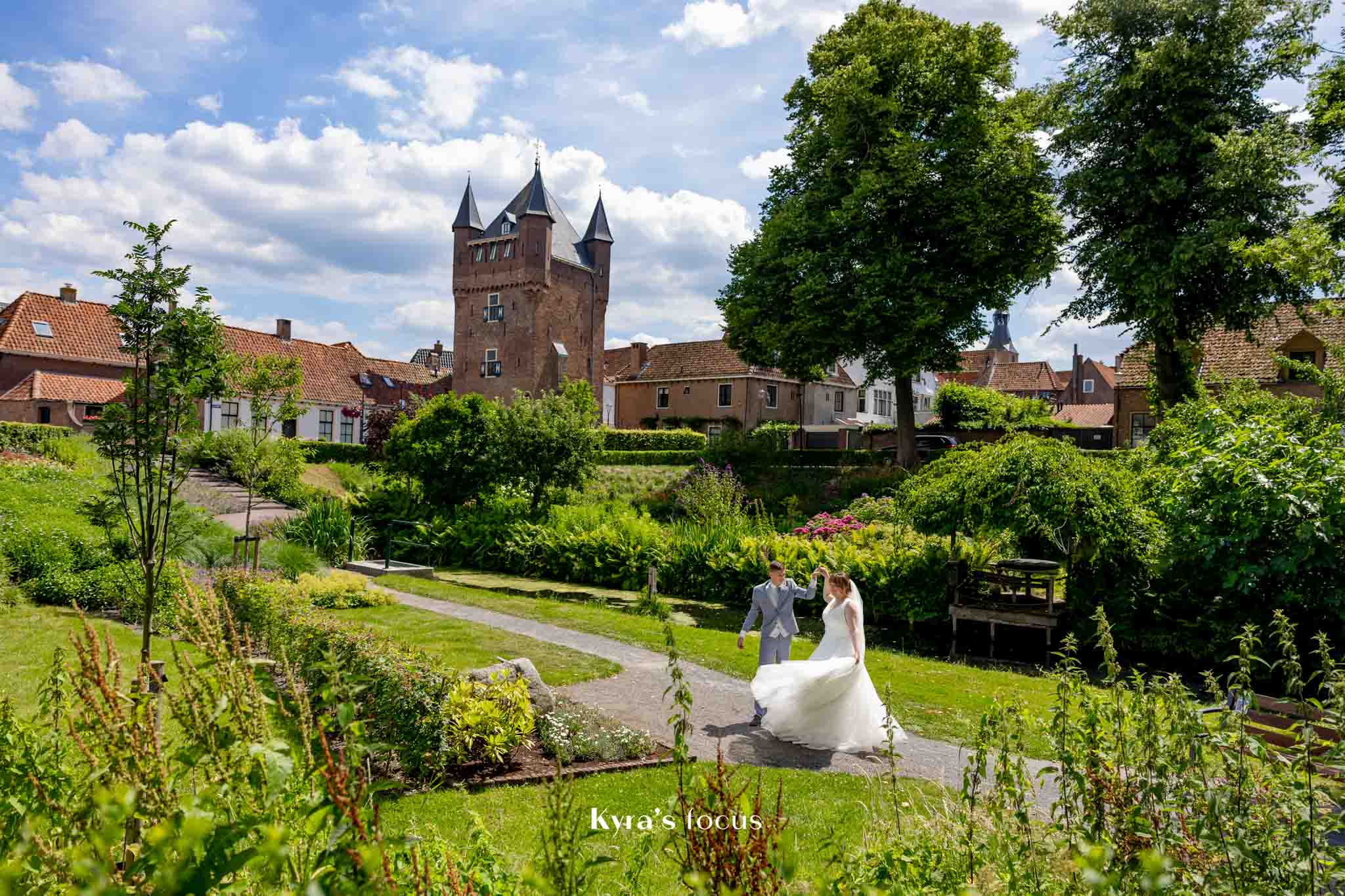 Ze steekt er veel tijd en energie in om je als bruidspaar echt te leren kennen. Eerst telefonisch contact, daarna een kennismakingsgesprek bij ons thuis en daarna nog een pre-shoot, op een locatie naar keuze, waardoor wij en onze kinderen even hebben kunnen wennen aan het voor de camera staan. Ze is ook super leuk met kinderen en dat hielp echt met onze dochter die foto’s maken eerst maar spannend vond. De pre-shoot leverde al hele mooie foto’s en dat beloofde dus wat voor de trouwdag.